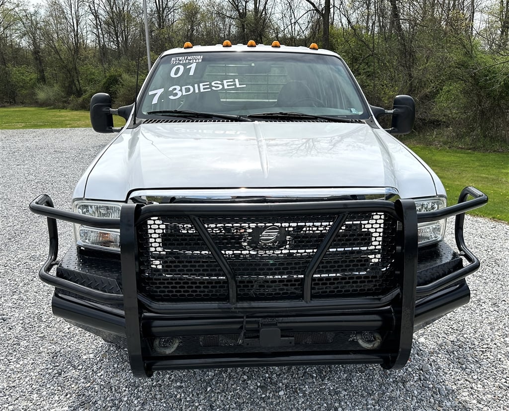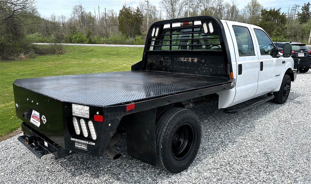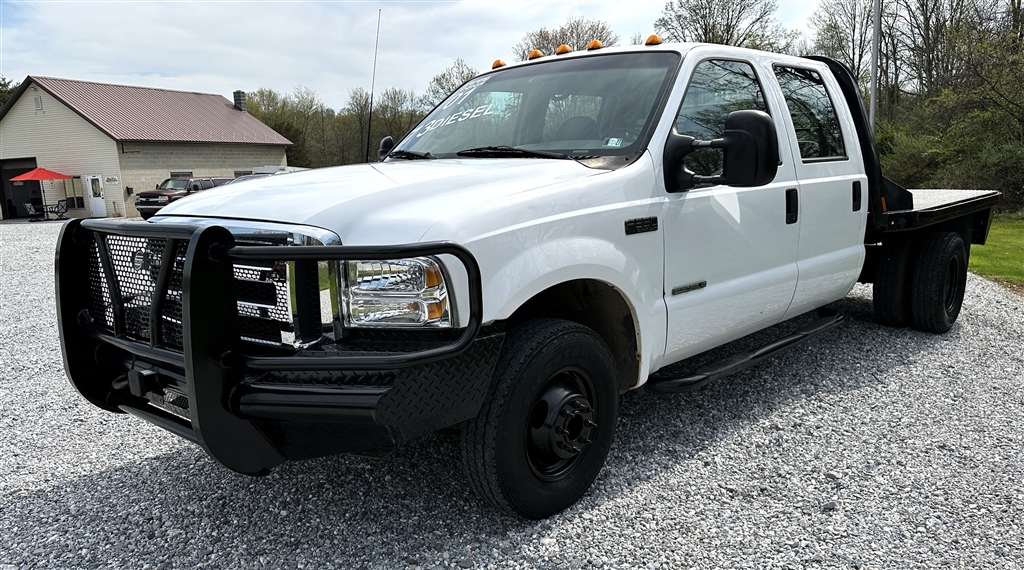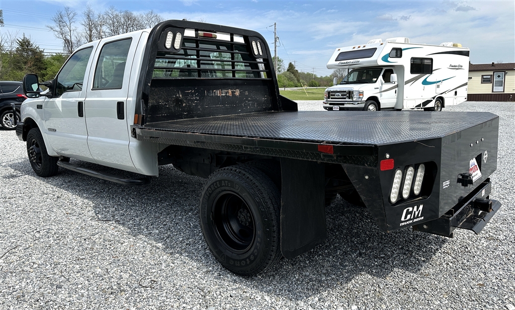 2001 FORD F350 DUAL WHEEL 7.3 DIESEL CREW CAB REAR WHEEL DRIVE, 7.3 DIESEL, AUTOMATIC, AM/FM STEREO, VINYL BENCH SEATS 6 PEOPLE, CM FLAT BED WITH GOOSE NECK BALL, REAR CAB BULKHEAD AND LED LIGHTS, 2 NEW BATTERIES, NEW GLOW PLUGS, 2 NEW TIRES, FRESH SERVICE, PA STATE INSPECTED AND READY TO GO, THIS IS ONE STRONG RUNNING NO FRILLS WORK HORSE THAT WE ARE SELLING ON CONSIGNMENT FOR A FRIEND. PRICED AT $9,790.