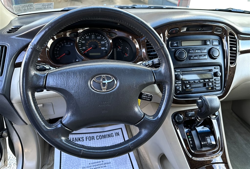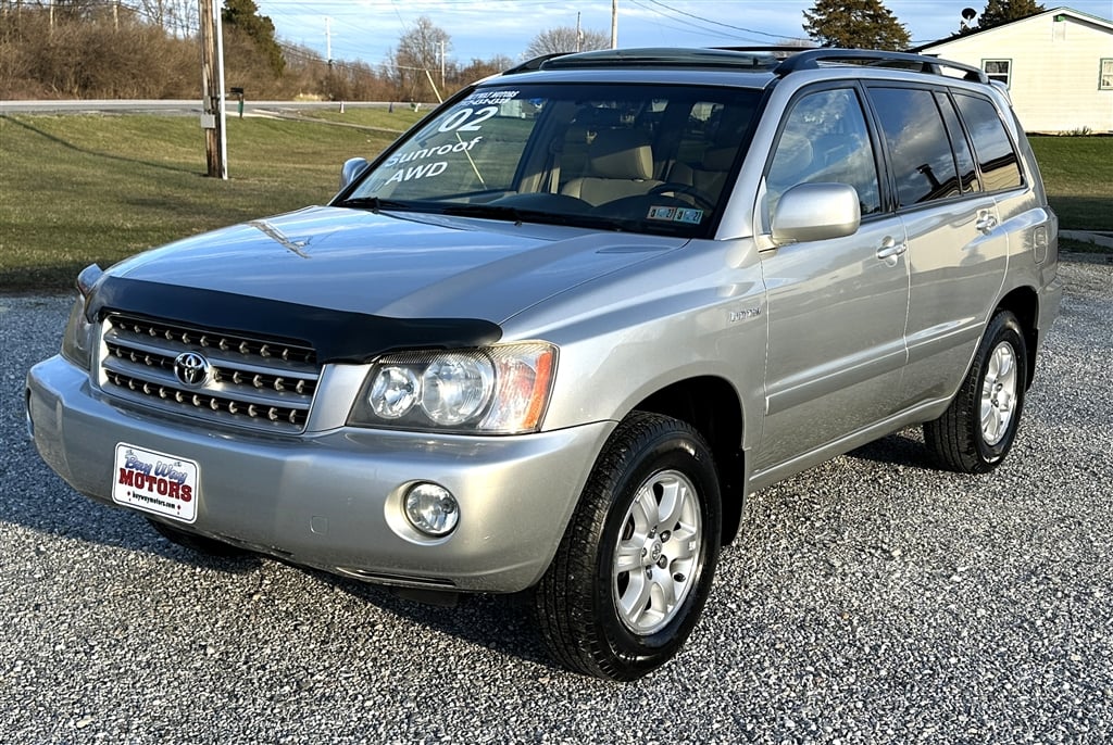 2002 TOYOTA HIGHLANDER LIMITED ALL WHEEL DRIVE, 3.0 V6, AUTO, POWER WINDOWS, POWER LOCKS, CRUISE, TILT, POWER SUNROOF, DUAL HEATED POWER LEATHER SEATS, LUGGAGE RACK, PREMIUM ALLOYS WITH MICHELINS, AM/FM PREMIUM JBL STEREO CASS WITH CD PLAYER, TOW PACKAGE, WOODGRAIN AND SO MUCH MORE!! DONT MISS THIS RARE LOCAL ONE OWNER HIGHLANDER. THIS IS THE NEWEST 2002 YOU WILL EVER SEE IN YOUR LIFETIME, ALWAYS SERVICED, ALWAYS GARAGED, ALWAYS KEPT SPOTLESS, SERVICED LIKE A CLOCK. WE ARE FORTUNATE ENOUGH TO BE ABLE TO OFFER THIS NEEDLE IN THE HAYSTACK TO ONE LUCK CUSTOMER FOR $9,490. WITH ONLY 128,154 METICULOUSLY MAINTAINED MILES. COME NOW BEFORE ITS GONE BECAUSE WE WILL NEVER FIND ANOTHER ONE IN THIS CONDITION.