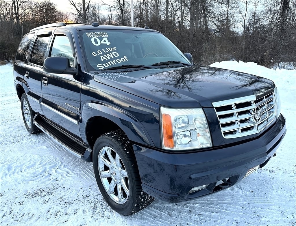 2004 CADILLAC ESCALADE LUXURY AWD, 6.0 LITER V-8, AUTOMATIC TRANS, THIRD ROW SEATING, POWER WINDOWS, POWER LOCKS, CRUISE, TILT, POWER MIRRORS, DUAL CLIMATE CONTROL, DUAL HEATED POWER LEATHER SEATS, PREMIUM AM/FM BOSE STEREO WITH CD PLAYER, POWER SUNROOF, RUNNING BOARDS WITH LED LIGHTED STEP, TOW PACKAGE, LUGGAGE RACK, 20'' CHROME WHEELS, FULLY SERVICED AND PA STATE INSPECTED READY TO GO TO A NEW HOME. RUNS AND DRIVES LIKE A DREAM. TAKE THE WHOLE FAMILY AWAY IN ANY WEATHER. WE HAVE THIS BEAUTIFUL OLD SCHOOL ESCALADE PRICED AT $12,450. WITH ONLY 102,162 WELL CARED FOR MILES. THIS PRICE INCLUDES A POWERTRAIN WARRANTY. ALL TRADES CONSIDERED AND FINANCING IS AVAILABLE WITH DECENT CREDIT. DONT MISS YOUR CHANCE TO OWN THIS SWEET OLD SCHOOL CADDY.