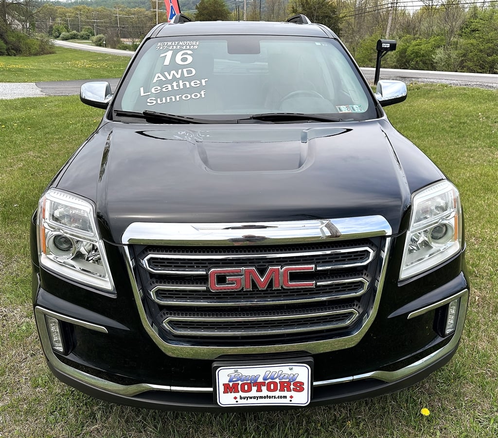 2016 GMC TERRAIN SLT ALL WHEEL DRIVE. 2.4 LITER 4 CYLINDER, AUTO, POWER WINDOWS, POWER LOCKS, CRUISE. TILT AND TELESCOPING STEERING WHEEL, POWE SUNROOF, POWER DRIVERS SEAT, DUAL HEATED LEATHER SEATS, BACKUP CAMERA, PIONEER AM/FM PREMIUM STEREO, 18 INCH PREMIUM ALLOY WHEELS WITH BRAND NEW TIRES AND MUCH MORE. FULLY SERVICED AND PRICED TO SELL QUICK AT $9,650. INCLUDING A $350. DEALER DOC FEE, WITH ONLY 115,424 WELL MAINTAINED MILES. THIS LOW PRICE INCLUDES A POWETRAIN WARRANTY. ALL TRADES CONSIDERED AND FINANCING IS AVAILABLE WITH CREDIT APPROVAL.