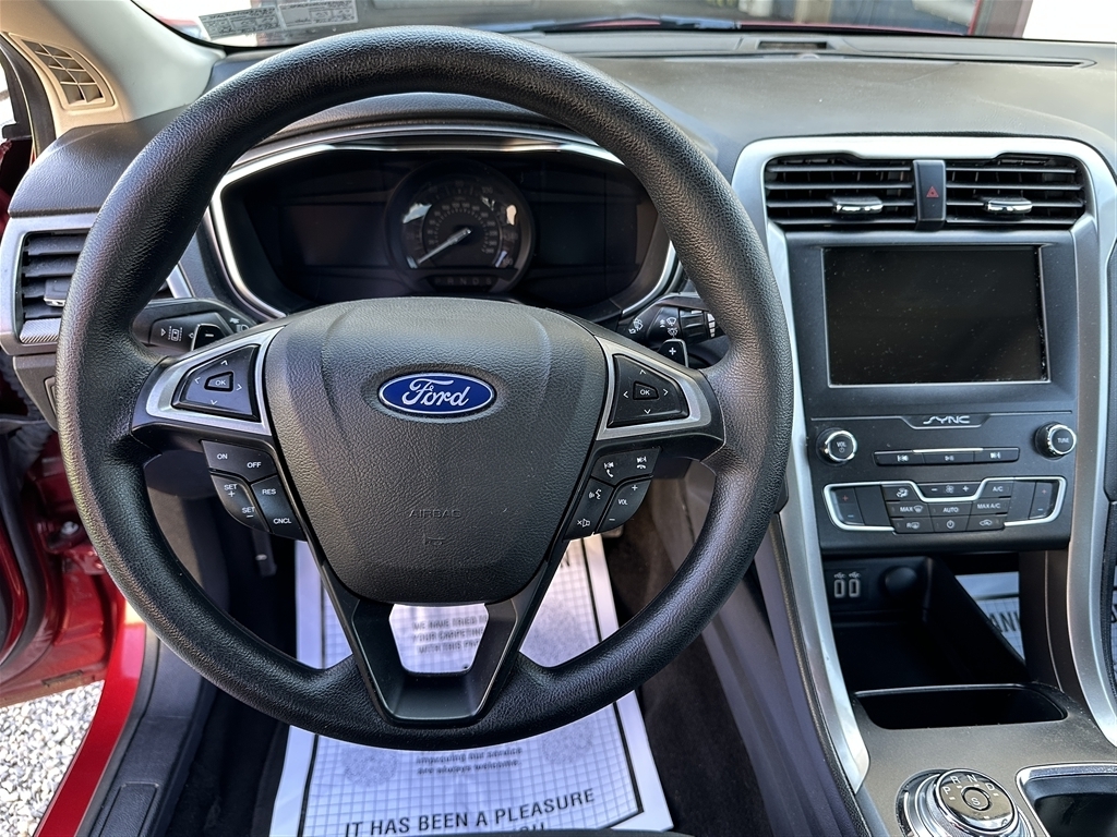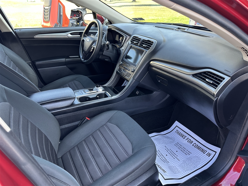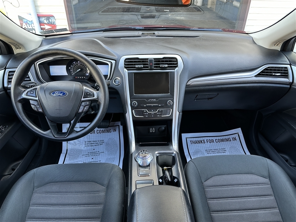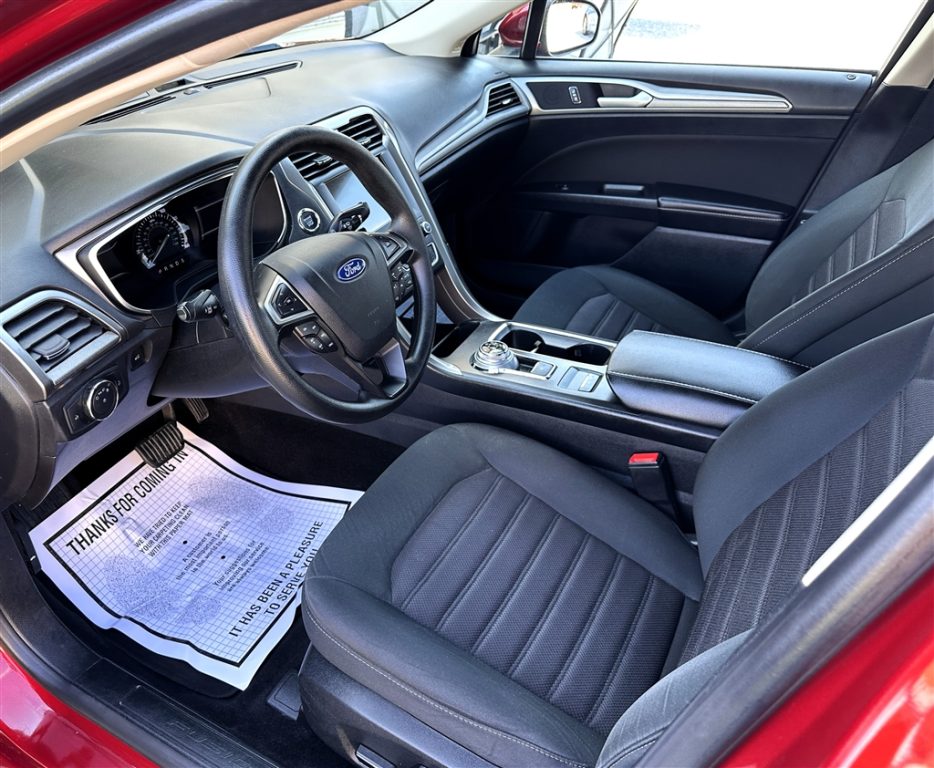 2019 FORD FUSION SE, 1.5 ECOBOOST 4 CYLINDER, AUTO WITH SPORT DRIVE PADDLE SHIFT, POWER WINDOWS, POWER LOCKS, CRUISE, TILT, STEERING WHEEL AUDIO CONTROLS, DUAL CLIMATE CONTROL, PUSH TO START IGNITION, REMOTE KEYLESS ENTRY, AM/FM PREMIUM SYNC SOUND SYSTEM, BACK UP CAMERA, LANE KEEPING SYSTEM, BLIND SPOT MONITORING, 17 INCH PREMIUM ALLOYS AND MORE. WE HAVE IT PRICED TO SELL FAST AT $12,977. WITH ONLY 74,417 WELL MAINTAINED MILES. SUPER FUN TO DRIVE AND GETS INCREDIBLE FUEL ECONOMY. ALL TRADES CONSIDERED AND FINANCING IS AVAILABLE. COME TAKE THIS BEAUTIFUL EYE CATCHING RUBY RED FUSION HOME WITH YOU TODAY!!