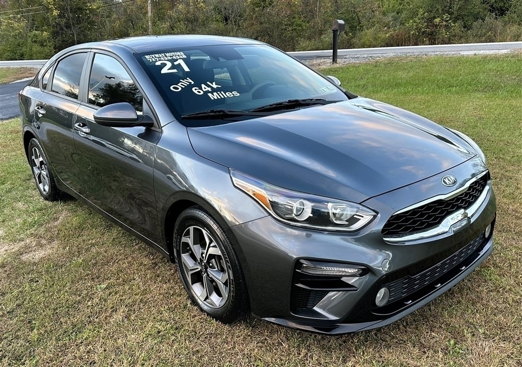 2021 KIA FORTE LXS 4 DOOR SEDAN, 2.0 LITER 4 CYLINDER, AUTOMATIC, MODE SELECT CONTROL, POWER WINDOWS, POWER LOCKS, CRUISE, TILT AND TELESCOPING STEERING WHEEL, BIG DISPLAY SCREEN, PREMIUM AM/FM STEREO APPLE CAR PLAY AND ANDROID READY, BACK UP CAMERA, DARL TINTED WINDOWS, LANE DEPARTURE, LANE KEEPING, STEERING WHEEL AUDIO CONTROLS, BLUETOOTH, 16 INCH PREMIUM ALLOY WHEELS WITH 4 BRAND NEW TIRES AND MORE. THIS IS ONE GOOD LOOKING CAR THAT GETS GREAT FUEL ECONOMY. WE PRICED IT UNDER THE MARKET AT $13,997. WITH A LOW 64,709 WELL MAINTAINED MILES. FULLY SERVICED WITH NEW PA STATE INSPECTION AND READY FOR A NEW FAMILY. THIS GREAT PRICE INCLUDES A POWERTRAIN WARRANTY. ALL TRADES CONSIDERED AND FINANCING IS AVAILABLE WITH APPROVED CREDIT. COME TAKE A LOOK AT IT.
